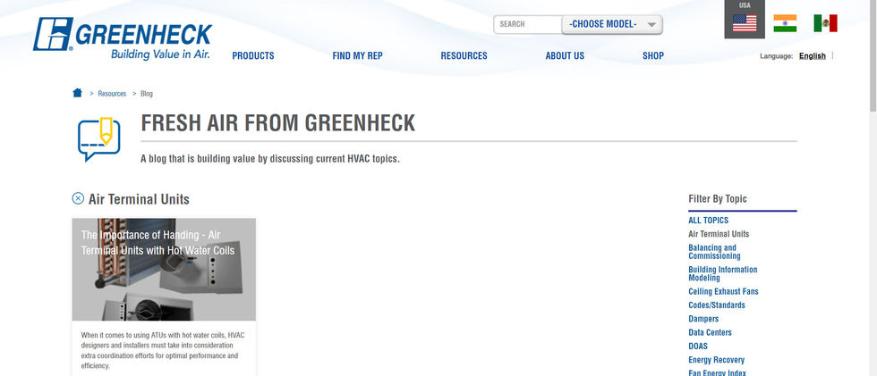 Created and launched the first-ever public blog for greenheck.com ("Fresh Air from Greenheck"). Includes blog summary page, blog post pages, browse by topics, author info, comments, subscriptions, social sharing, pagination controls, tagging, blog post categories, content moderation tools, and more. English only. Utilized the native module in Sitefinity, but expanded it greatly with custom web development to enhance the look and feel, as well as the set of tools available to site visitors and content managers.